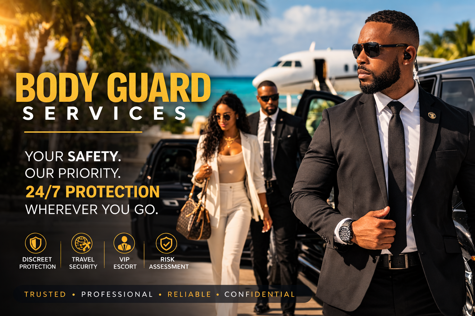 Jamaica Get Away Travels provides our clientele personalizes discreet bodyguard services. If you are planning a weekend or an extended vacation we will travel with clients anywhere. We offer personalized security for high profile film, television, music industry celebrities, athletes, VIPs, and other at-risk individuals.