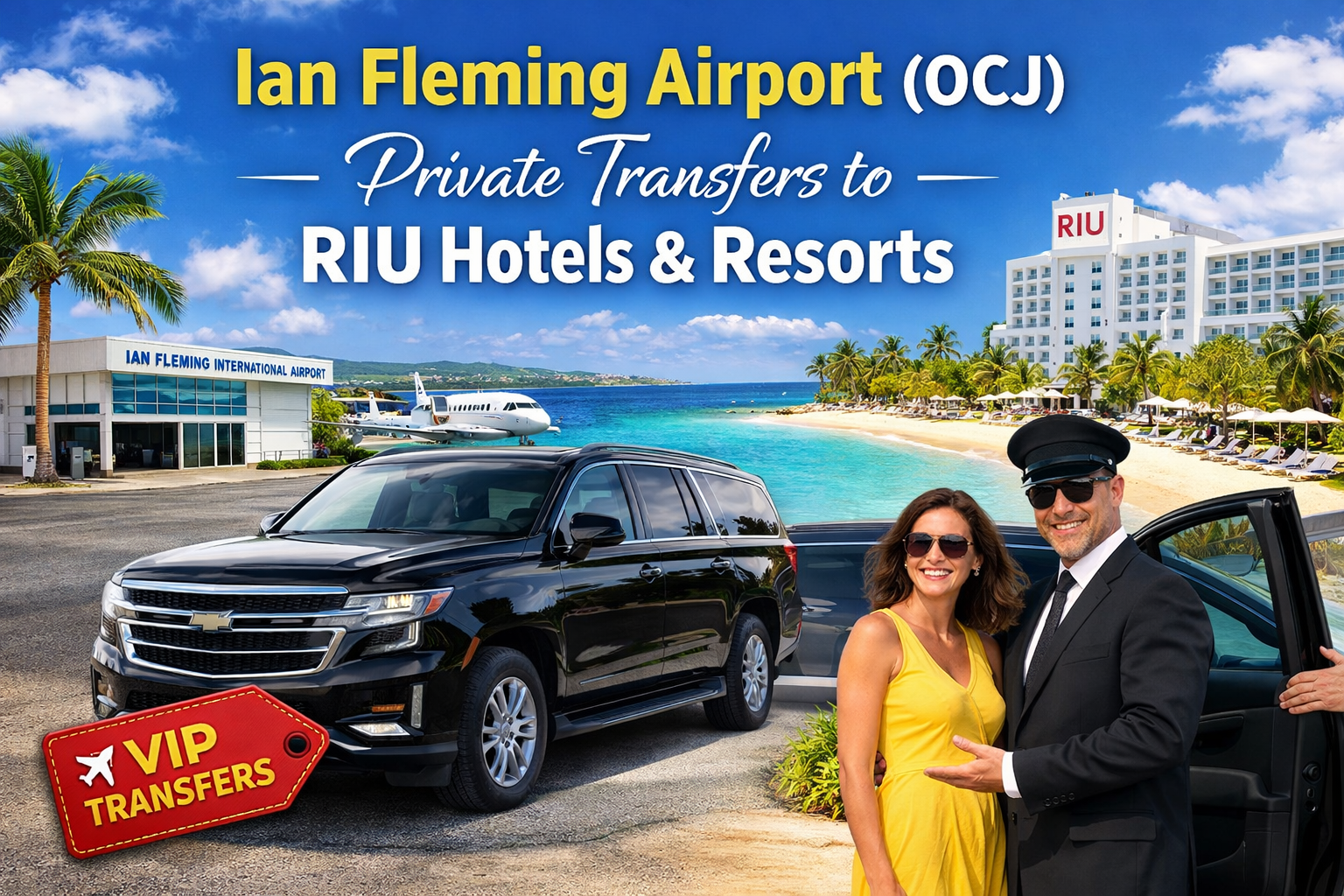 Travel in confidence with our private airport transfers from Ian Fleming Airport (OCJ) to RIU Hotels & Resorts in Jamaica. Whether you’re arriving for a relaxing vacation or a getaway, our professional chauffeur service ensures a seamless journey from touchdown to resort check-in.